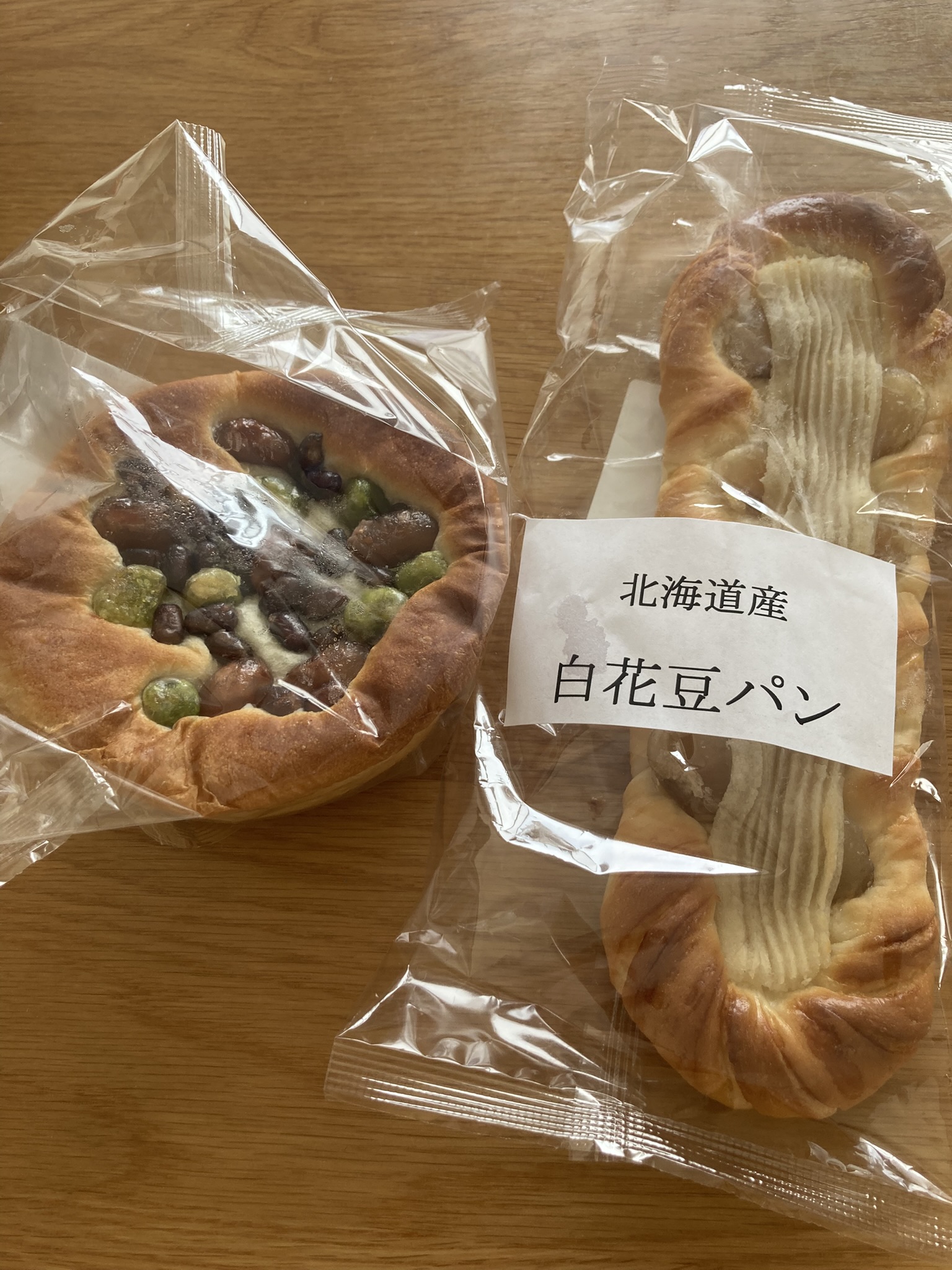 このパンは「日日(にちにち)ベーカリー」というところで作られていまして、 実は長年北見市内の学校給食のパンも提供しているメーカーなんだそうです。 オホーツク産小麦を使っているのだそうです。 そして、豆パンのほかにもこんな可愛いパンもあります。 右はチョココーティングで中はカスタードクリーム入り、左はアーモンドチョコで中もアーモンドペーストが入っています。そしてこの物価高騰のさなかでも高くて180円くらいで安いんです。くるみとレーズンが入ったカンパーニュとか、バゲットとかも好きなんですが、応援したくなるパン屋さんです。
